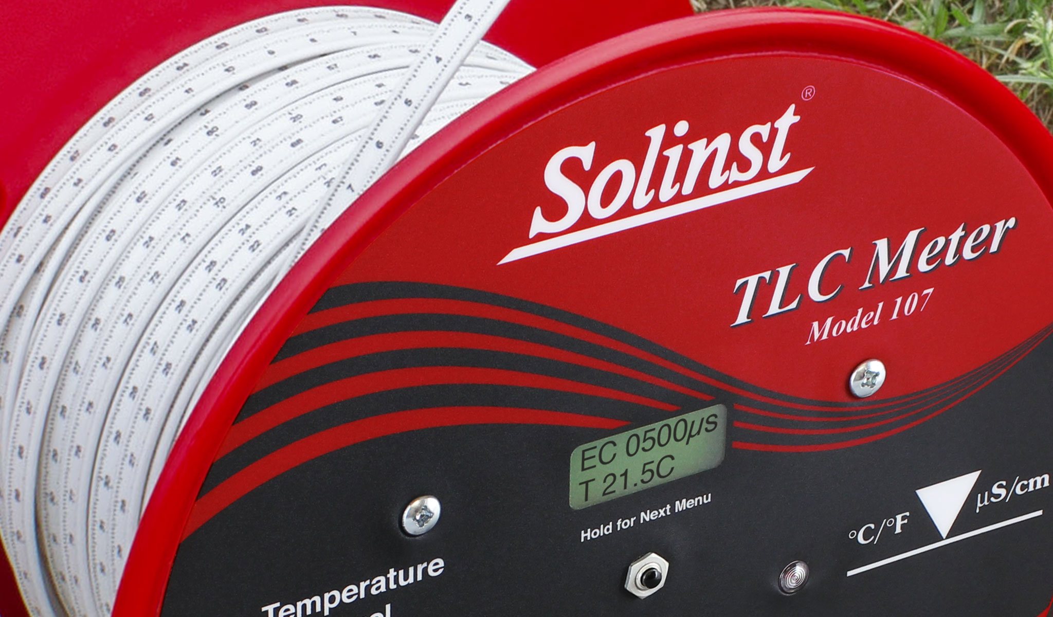 Il Solinst Model 107 TLC Meter è uno strumento portatile per il profilazioni di conducibilità e temperatura in acquiferi sotterranei e corpi idrici superficiali, (TLC = Temperature, Level, Conductivity) con lettura immediata su display LCD. La profondità/il livello vengono letti direttamente sul nastro piatto in PDVF marcato al laser ogni mm-cm-m disponibile fino a 300 m.